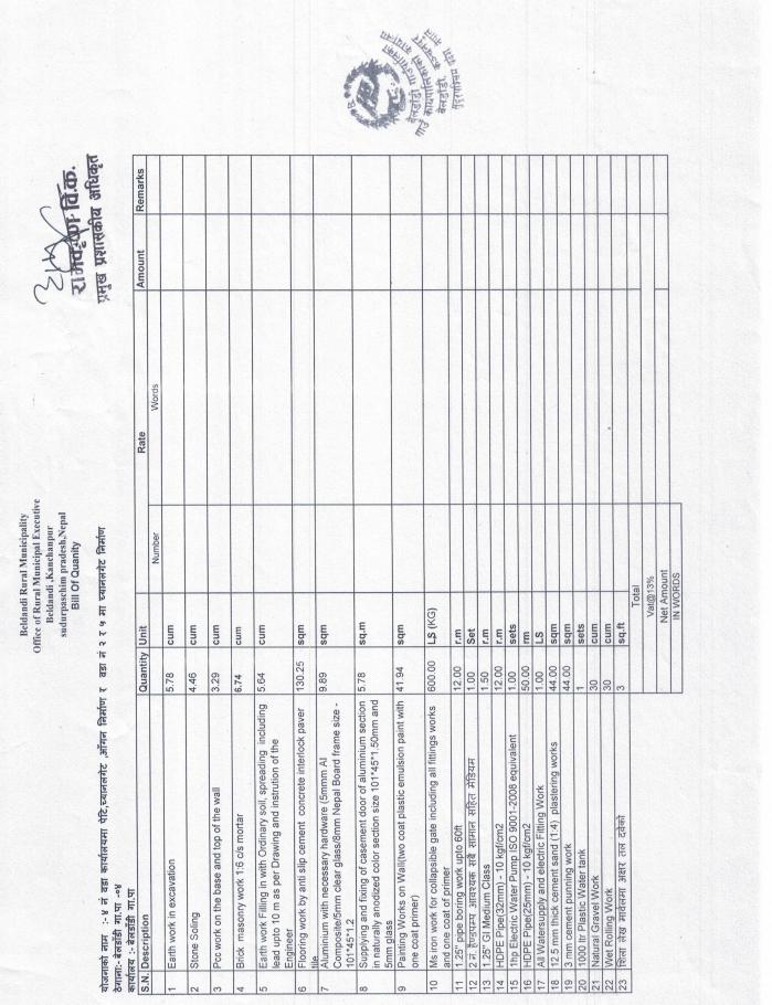 दर रेट पेश गर्ने सम्बन्धी सूचना ।