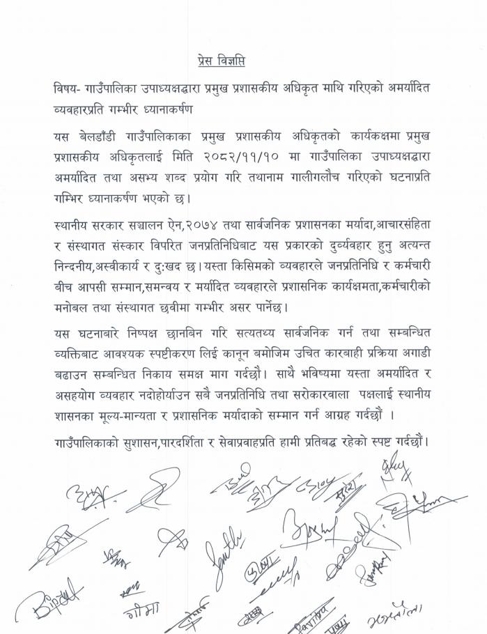 प्रेश विज्ञप्ति ।