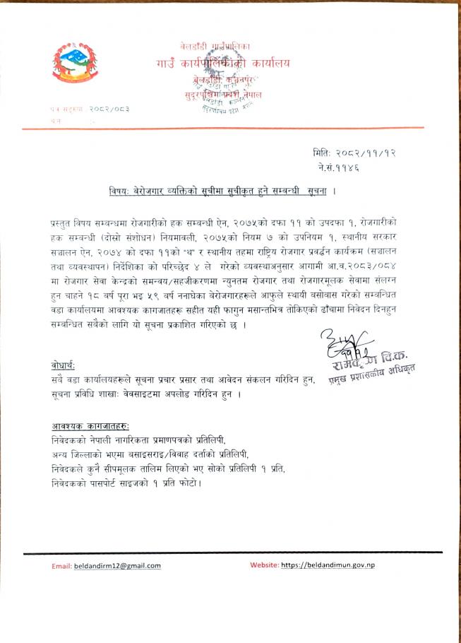 » बेरोजगार व्यक्तिको सूचिमा सुचिकृत हुने सम्बन्धमा ।