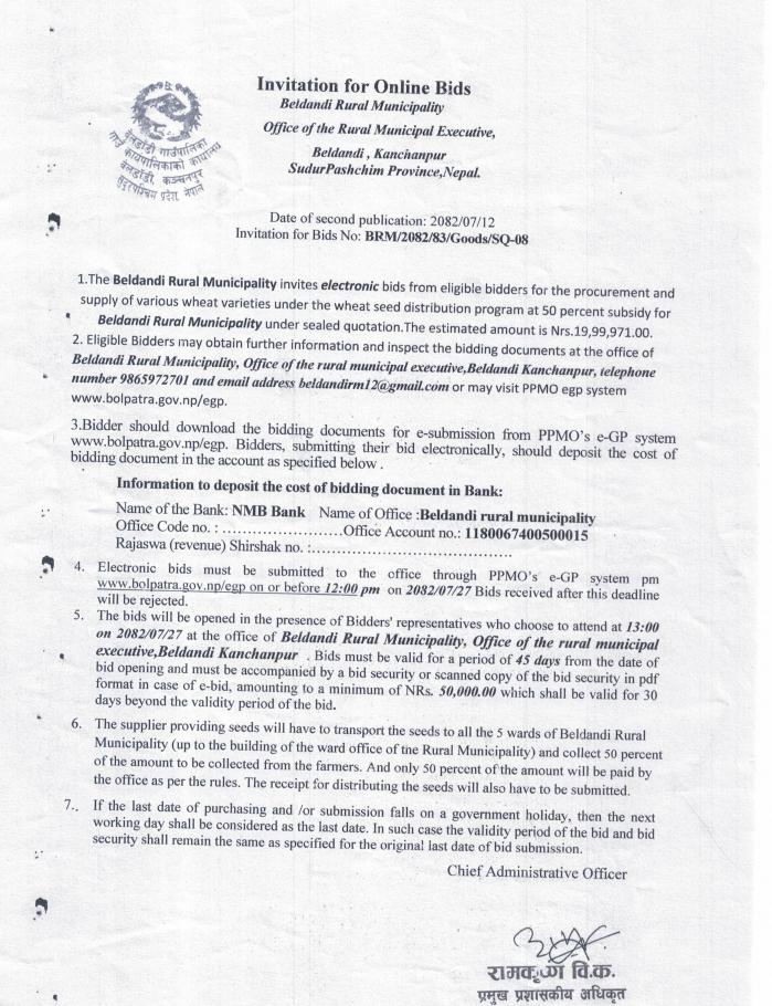 सार्वजनिक खरिद/बोलपत्र सूचना