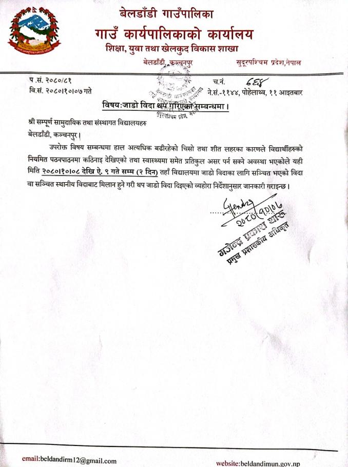 जाडो बिदा थप गरिएको सम्बन्धमा ।