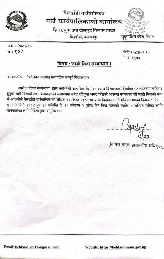 » जाडो बिदा सम्बन्धमा ।