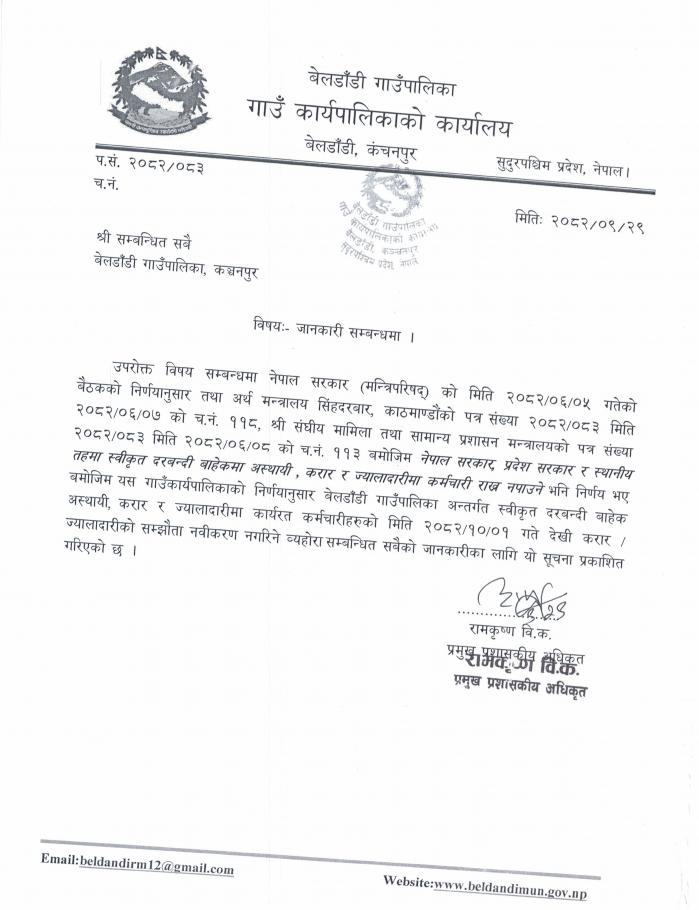 बेरोजगार सूचिकरणको म्याद थप सम्बन्धी सूचना ।