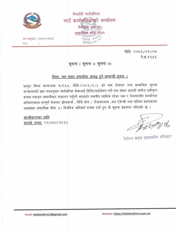 » श्रम संसार प्रणालीमा आवद्ध हुने सम्बन्धी सूचना ।